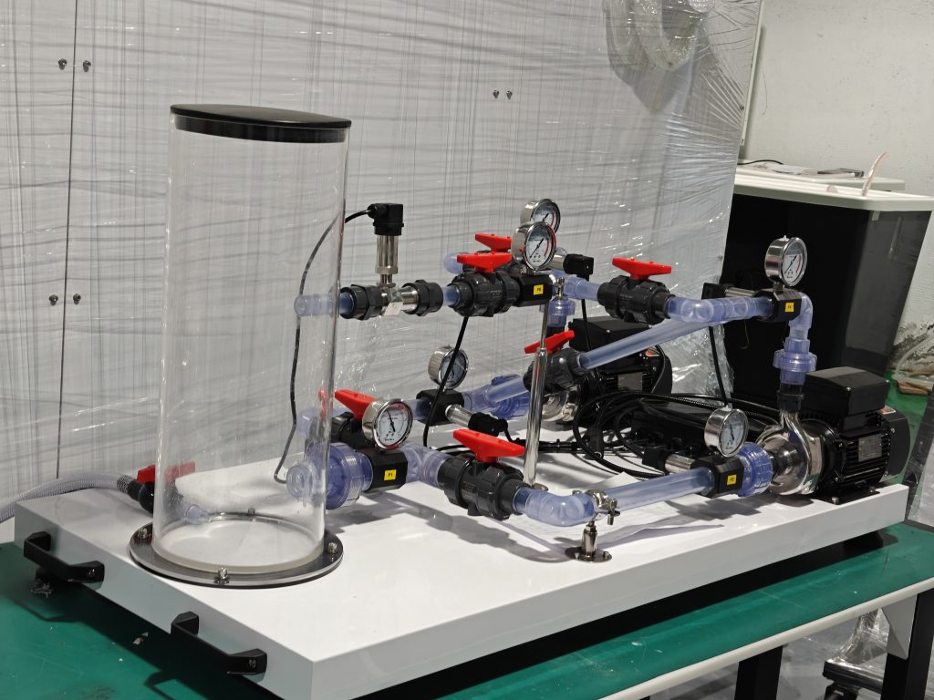 设备配备2台同规格离心泵及完整管路系统,搭配压力表、流量计、变频器等精密仪表,能精准采集流量、扬程、功率等关键参数,数据可自动记录、查询。
