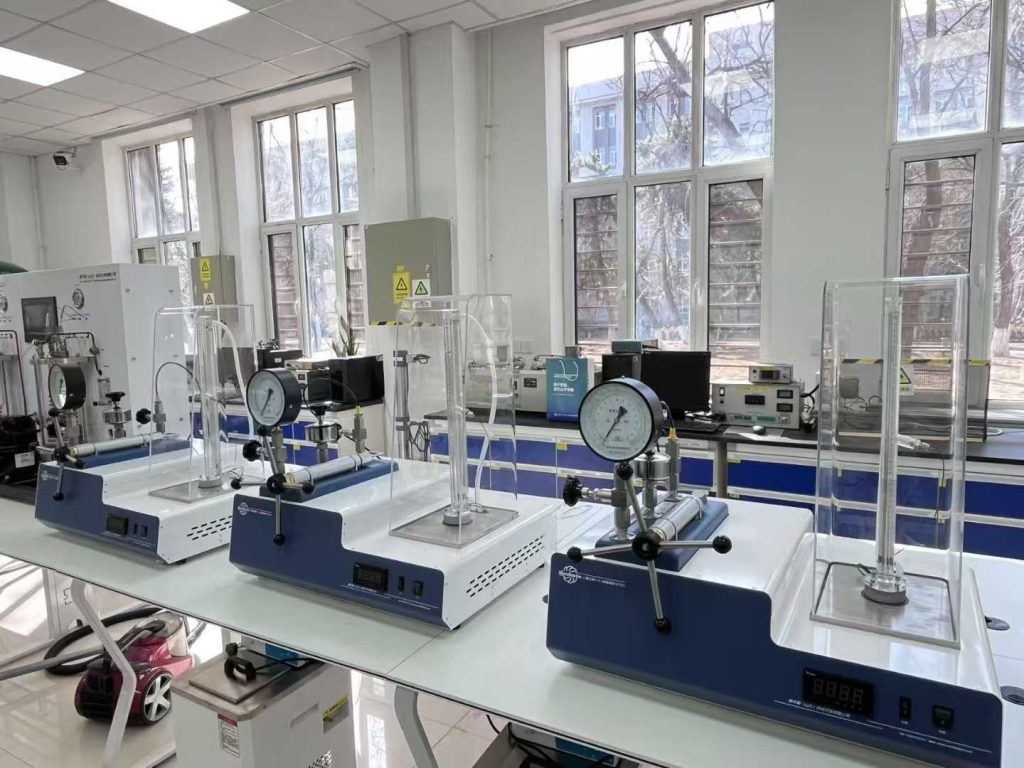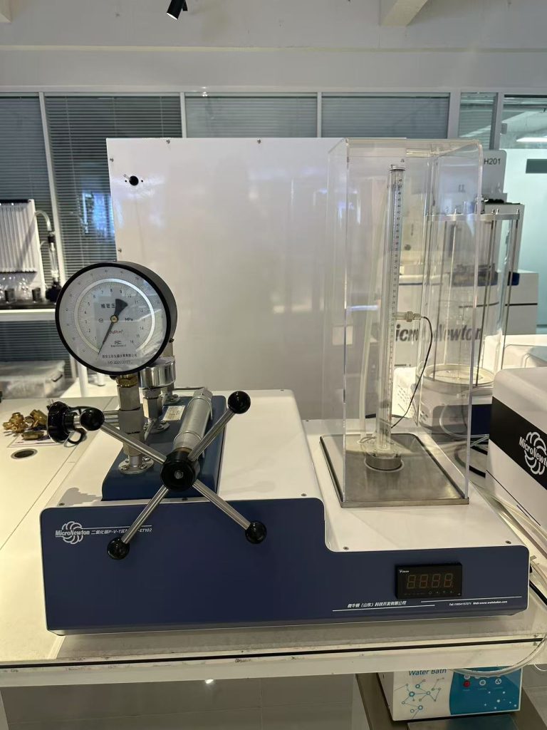 该设备由透明水套、玻璃毛细管、恒温水浴、活塞式压力计、温度传感器、压力传感器等部件组成。