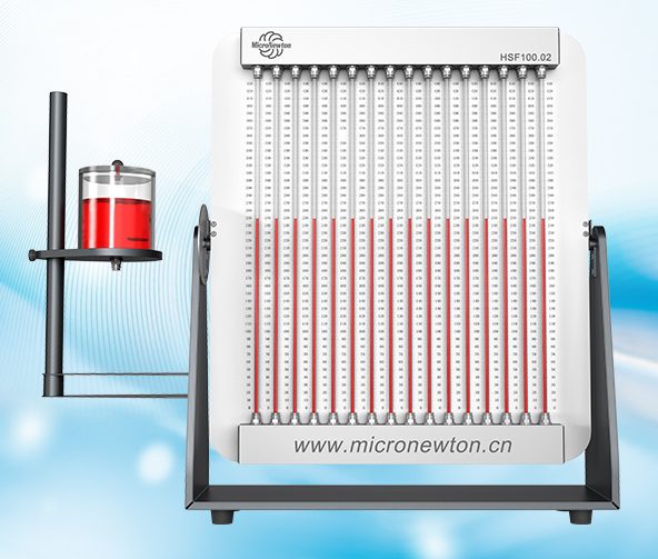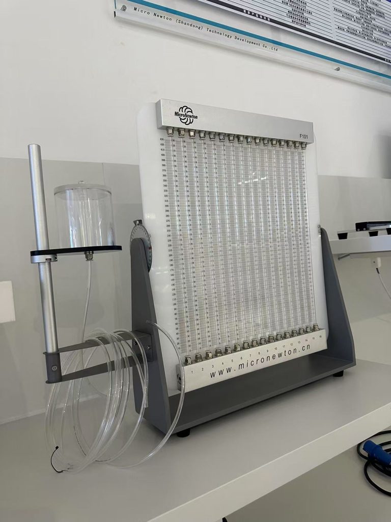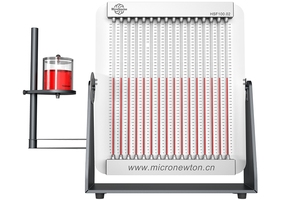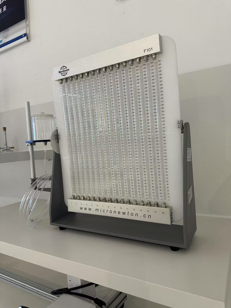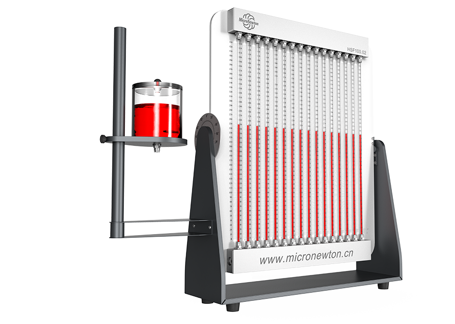 该模块为经典的液体压力计,由测压管、储液罐、角度调整支架构成,充注介质为水或油,使用便捷,读数直观,增加斜度可提升精度。