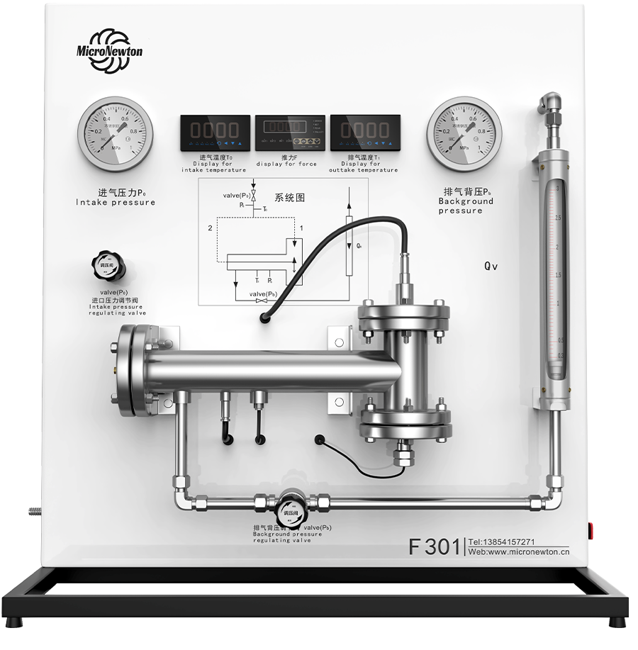本产品是基于《空气动力学》中可压缩流体相关拉法尔喷管特性实验的相关知识,通过气动流道、测力平衡杆、推力测试模块等组成,用于研究拉法尔喷管的射流速度及推力效率等研究;