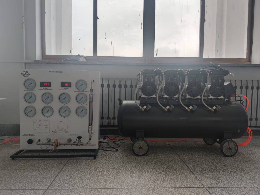 设备整体由气源、测试段、压力测量、调节阀组等构成,可通过气泵和阀门的配合,实现测量收敛和收敛-发散喷管(拉法尔喷管)的压力分布曲线,喷管的进口压力和背压均可调节。