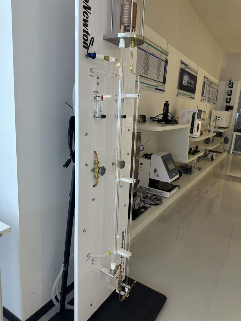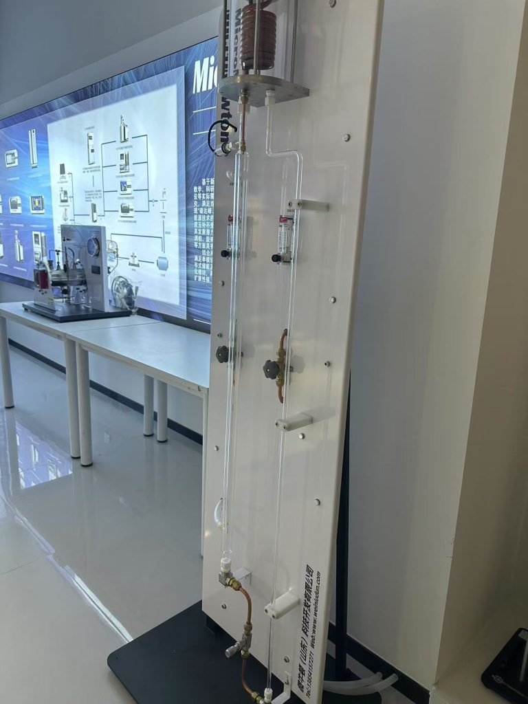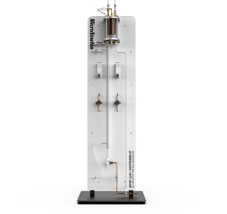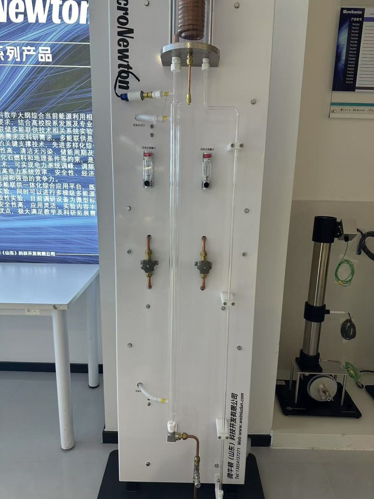 该设备的主体为一个由耐热玻璃制成的同心管热交换器,通过热交换器外管的热水传递的热量使溶剂沸腾,来演示竖管内液体沸腾各阶段现象。